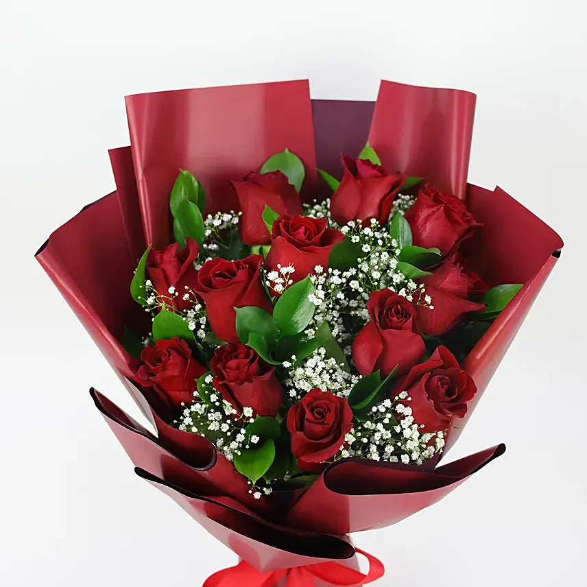 BUQUÊ DE ROSAS NATURAIS NACIONAL COM 12 BOTÕES